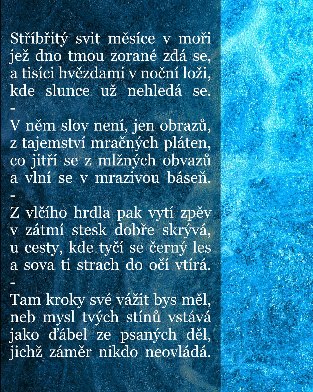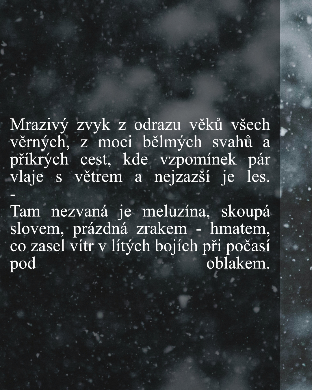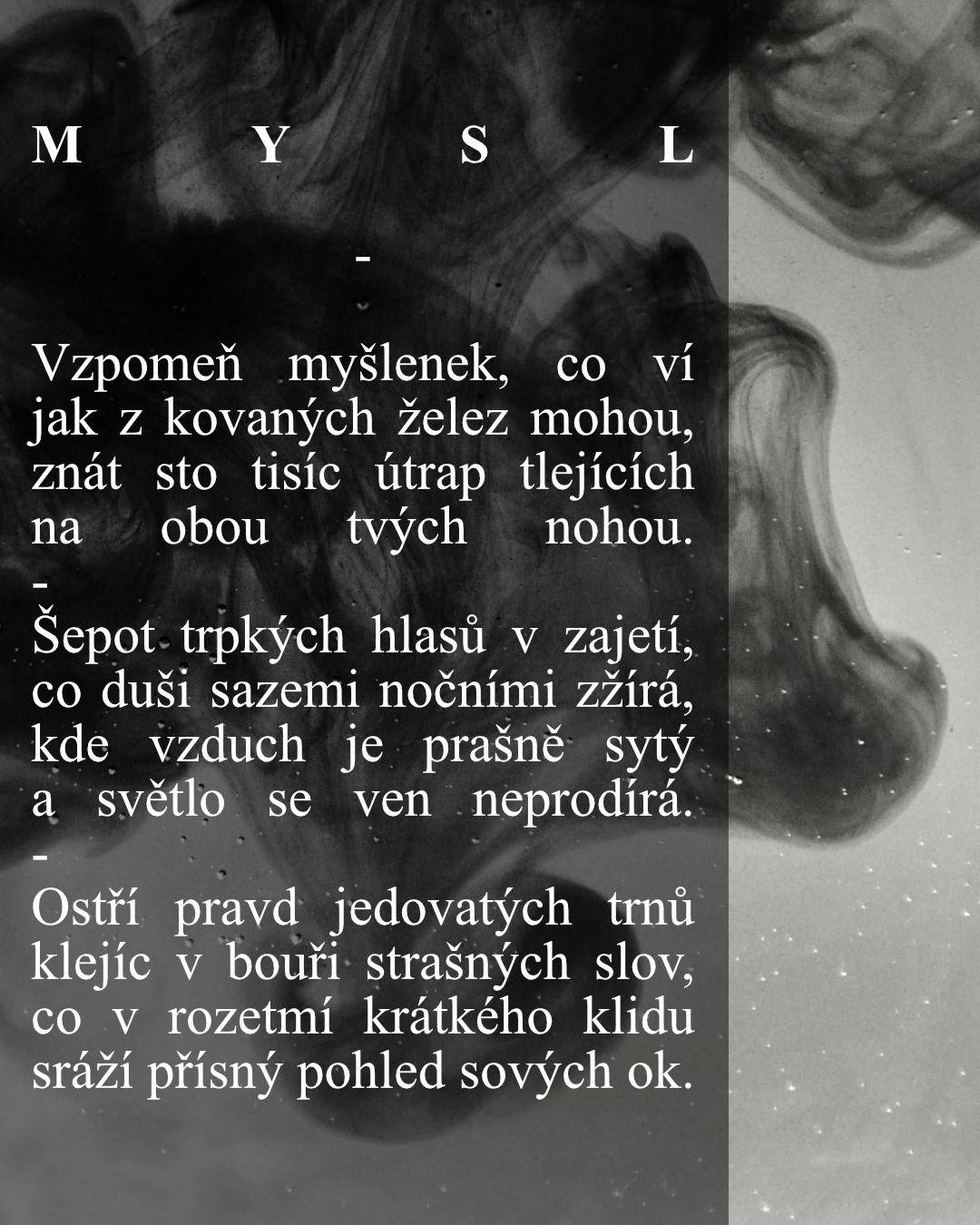 Introspektivní poezie s nádechem melancholie, smutku a zoufalství v kombinaci s inspirativním pozadím.